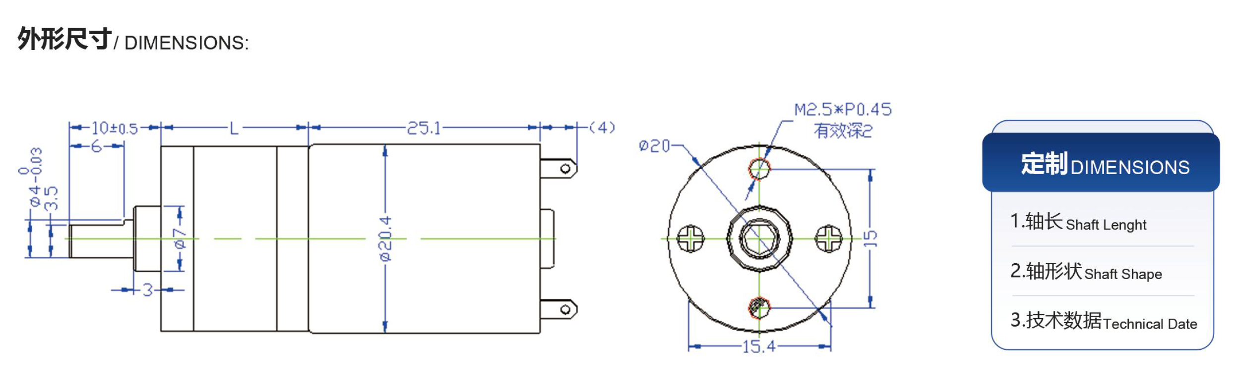 전체 길이: 25.1mm + L (하우징 길이)